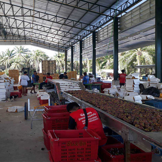 2. นำมังคุดที่คัดแยกแล้วบรรจุใส่แพคกิ้งเพื่อส่งออก